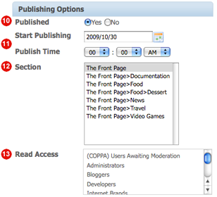 10. Published: Indicates if the Section is published live or not.