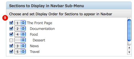 9. Sections to Display in Navbar Sub-menu: This module decides which sections you want to display on the top Navigation Menu Bar and in what order.